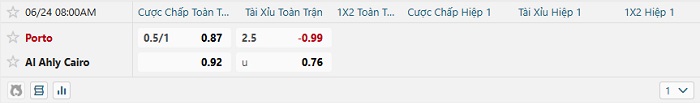 - Kèo tỷ số H1 Porto vs Ahly Cairo: 1-0