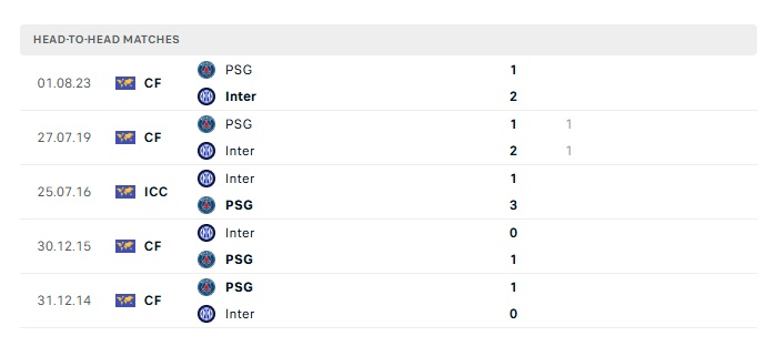 • Kèo tỷ số H2 PSG vs Inter Milan: 1-1