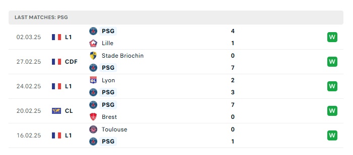 • Phong độ gần đây PSG