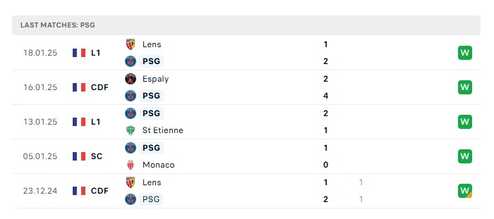 - Phong độ gần đây PSG
