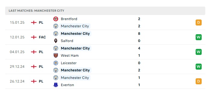 - Phong độ gần đâyMan City