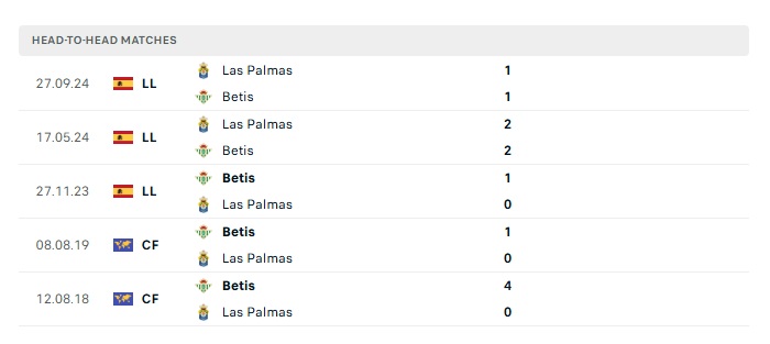 Lịch sử đối đầu Real Betis vs Las Palmas