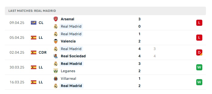 Hiện tại, phong độ thi đấu của Real Madrid cũng đang thua kém tương đối xa so với đối thủ. Cụ thể hơn, Real đang chỉ có 3 chiến thắng, 1 hòa và 3 thua trong 7 lần ra sân gần nhất của mình. Trong khi đó thì Arsenal đang bất bại 7 trận đã qua với 4 chiến thắng và chỉ 3 trận hòa. Do đó, trước mắt, lợi thế sân nhà vẫn sẽ giúp cho chủ nhà Real Madrid có được ít nhất 1 chiến thắng tối thiểu.