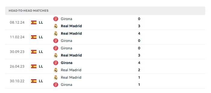 Lịch sử đối đầu Real Madrid vs Girona