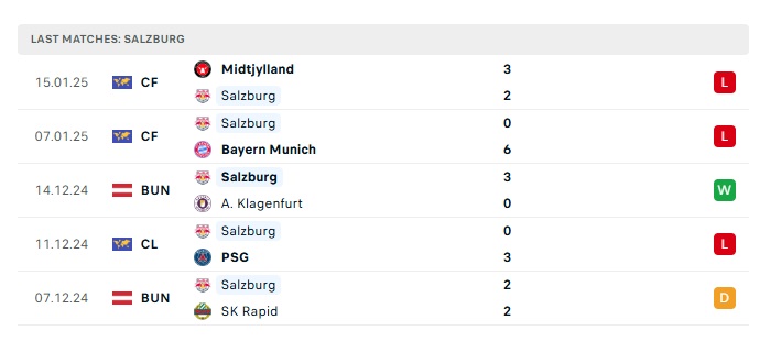 Phong độ gần đây Real Madrid vs RB Salzburg