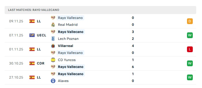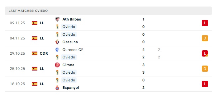 Phong độ gần đây Real Oviedo vs Rayo Vallecano