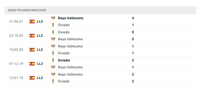 Lịch sử đối đầu Real Oviedo vs Rayo Vallecano
