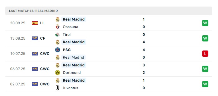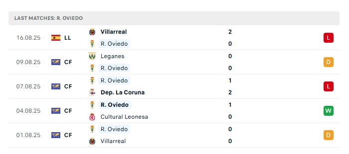 Phong độ gần đây Real Oviedo vs Real Madrid