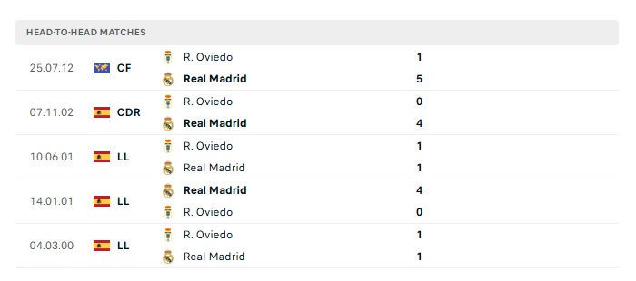 Lịch sử đối đầu Real Oviedo vs Real Madrid