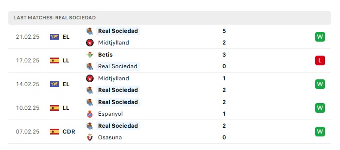 - Phong độ gần đây Real Sociedad