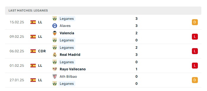 - Phong độ gần đây Leganes