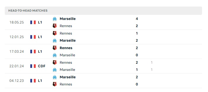 - Kèo tỷ số H2 Rennes vs Marseille: 0-2