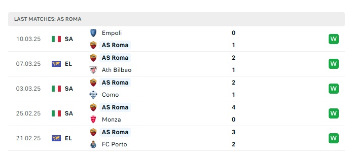Cần phải nhấn mạnh rằng chủ nhà Roma hiện tại đang có phong độ thi đấu cực cao trong thời gian qua. Theo ghi nhận, Roma lúc này đã có chuỗi bất bại 8 trận đấu liên tiếp với 7 chiến thắng và chỉ hòa 1. Trong khi đó thì Cagliari đang chỉ thắng 1, hòa 2 và thua 4 trong 7 trận đấu gần nhất của mình. Do đó, các chuyên gia đều tin vào việc đội chủ nhà sẽ tự tin có cho mình 3 điểm trước đối thủ.