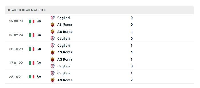 - Kèo tỷ số H2 Roma vs Cagliari: 3-0
