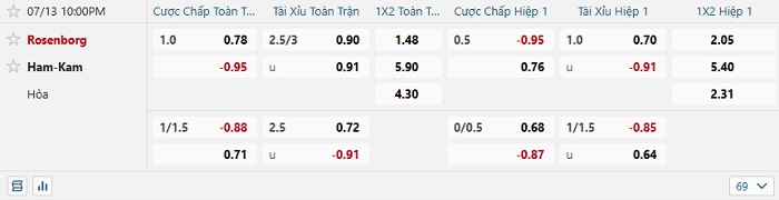 Bảng tỷ lệ kèo nhà cái Rosenborg vs HamKam