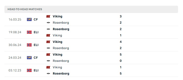 Lịch sử đối đầu Rosenborg vs Viking