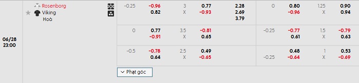 - Kèo tỷ số H1 Rosenborg vs Viking: 0-0