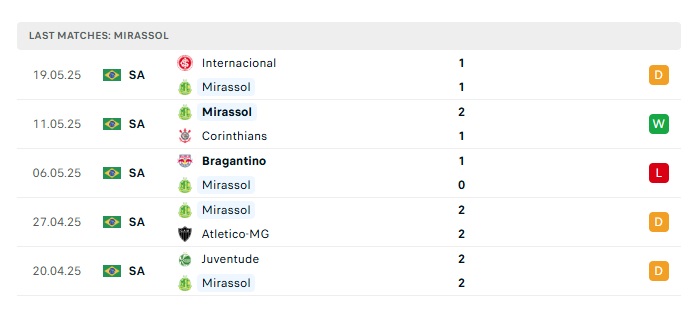 - Phong độ gần đây Mirassol