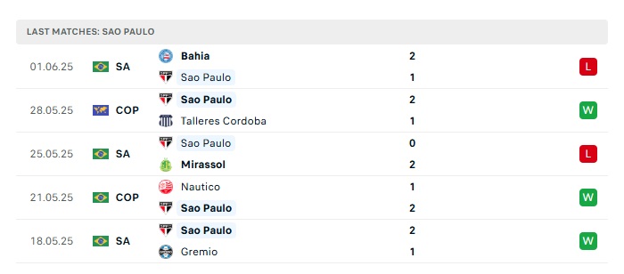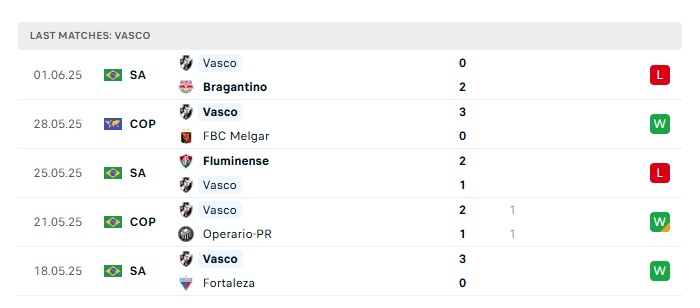 Phong độ gần đây Sao Paulo  vs Vasco DG
