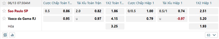 Soi kèo châu Á, kèo Sao Paulo vs Vasco DG