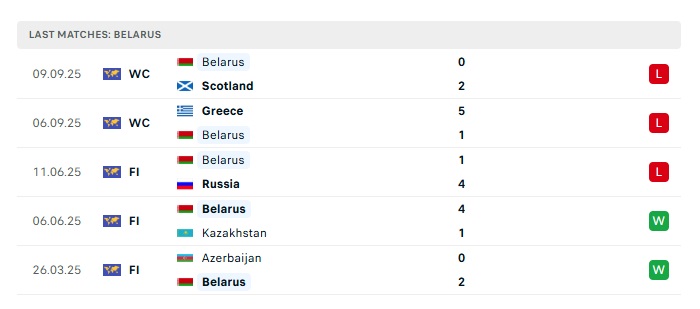 Trong thời gian gần đây, ai cũng nhận ra rằng kết quả thi đấu của hai đội đang có sự chênh lệch tương đối lớn. Với Belarus, họ đã có kết quả toàn thua trong cả 3 trận đấu liên tiếp vừa qua. Trong khi đó thì Scotland đã bất bại 3 trận gần nhất với 2 chiến thắng và chỉ hòa 1. Do đó, các chuyên gia đều tin rằng chủ nhà Scotland sẽ có cho mình 3 điểm trong ngày thi đấu hôm nay tại sân nhà.