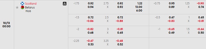 Soi kèo châu Á, kèo Scotland vs Belarus
