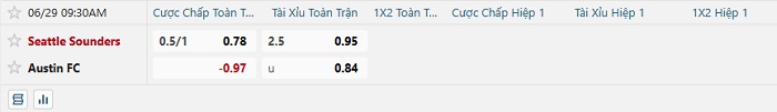 - Kèo tỷ số H1 Seattle Sounders vs Austin FC: 1-0