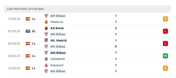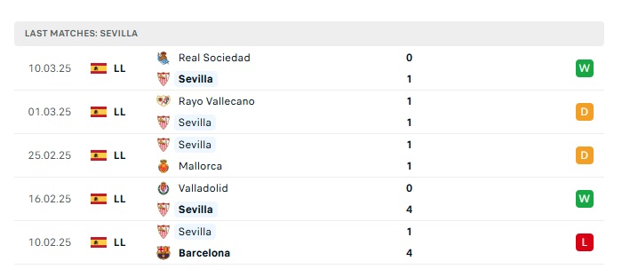 Phong độ gần đây Sevilla vs Athletic Bilbao