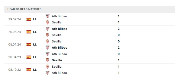 Lịch sử đối đầu Sevilla vs Athletic Bilbao