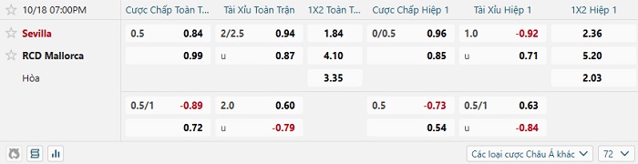 Soi kèo châu Á, kèo Sevilla vs Mallorca