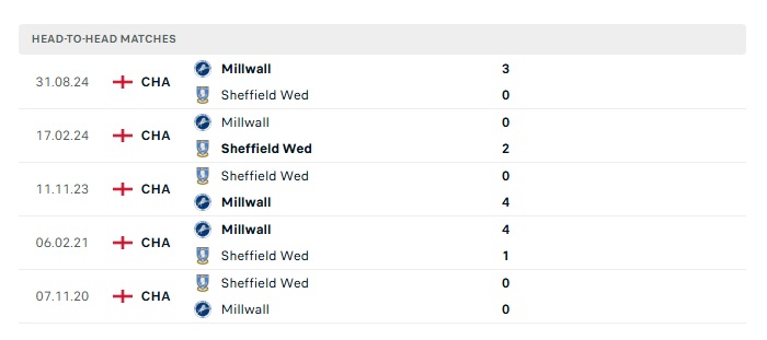 Lịch sử đối đầu Sheffield Wed. vs Millwall