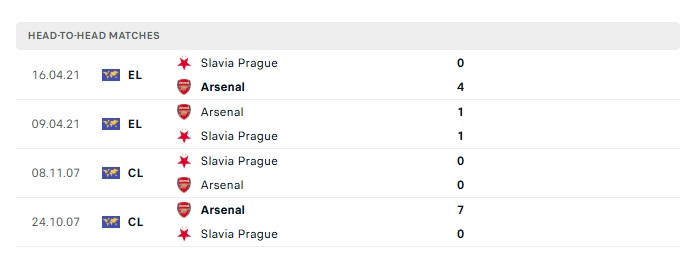 Lịch sử đối đầu Slavia Praha vs Arsenal