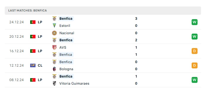 Phong độ gần đây Sporting Lisbon vs Benfica