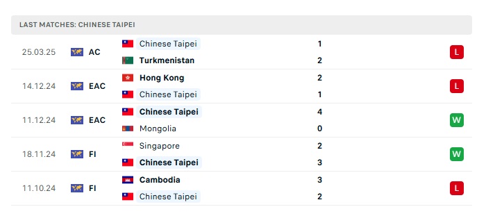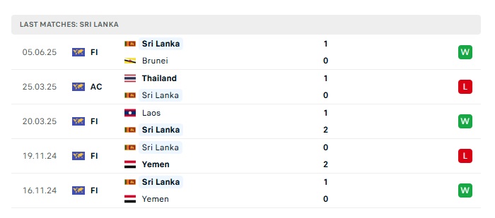 Phong độ gần đây Sri Lanka vs Đài Loan