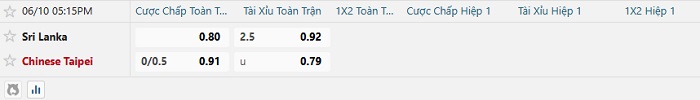 - Kèo tỷ số H2 Sri Lanka vs Đài Loan: 1-0