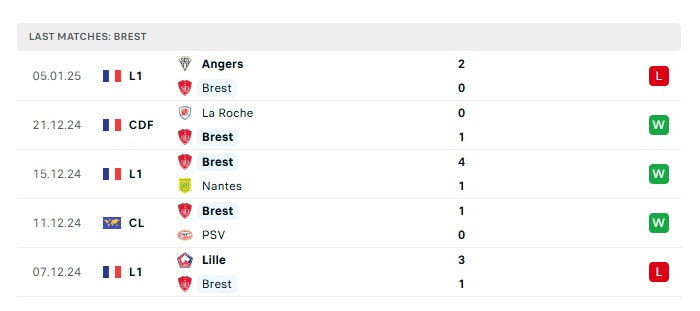 Lịch sử đối đầu Stade Brestois vs Lyon