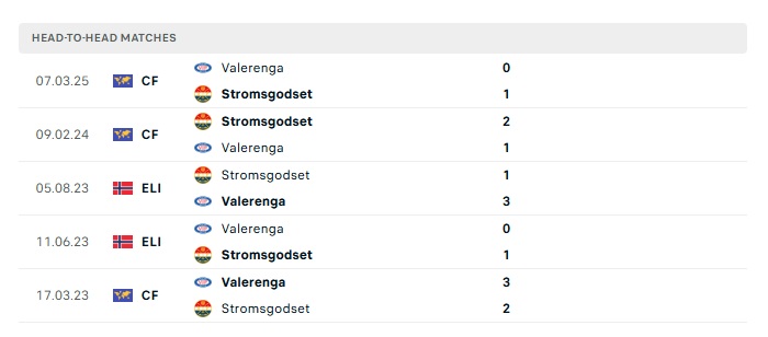 Lịch sử đối đầu Stromsgodset vs Valerenga