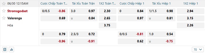 Bảng tỷ lệ kèo bóng đá hôm nay Stromsgodset vs Valerenga