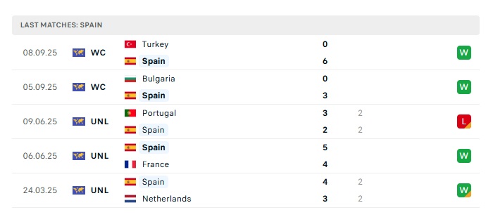 • Phong độ gần đây Tây Ban Nha