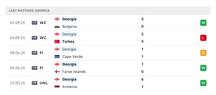 • Phong độ gần đây Georgia