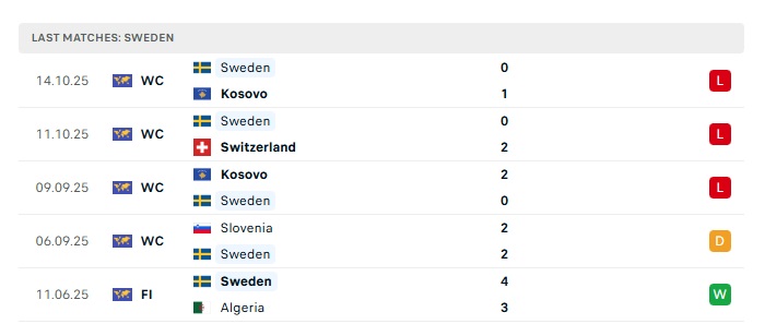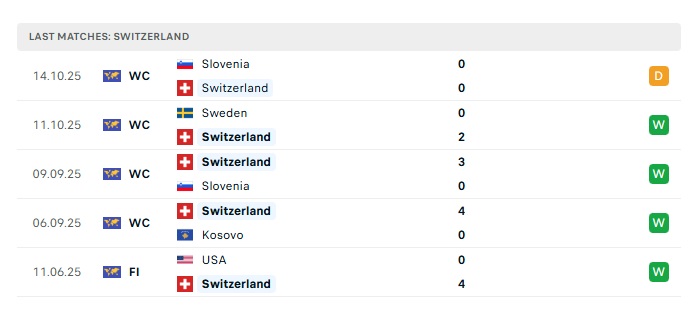 Phong độ gần đây Thụy Sỹ vs Thụy Điển