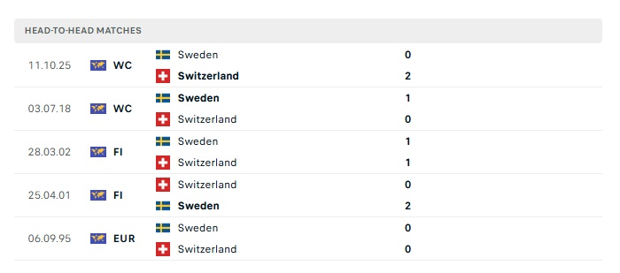 Lịch sử đối đầu Thụy Sỹ vs Thụy Điển