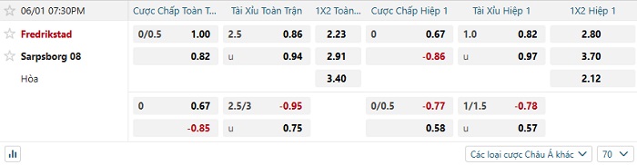Tip kèo Châu Á hiệp 1 Fredrikstad vs Sarpsborg