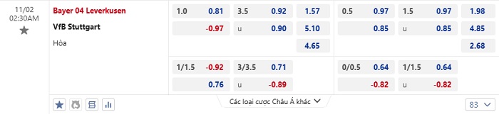 Tip kèo Châu Á full trận Bayer Leverkusen vs Stuttgart