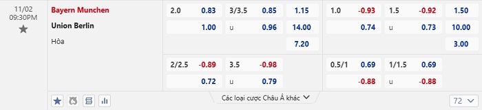 Tip kèo Châu Á hiệp 1 Bayern Munich vs Union Berlin
