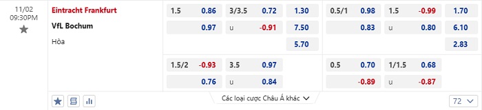 Tip kèo Châu Á full trận Frankfurt vs Bochum