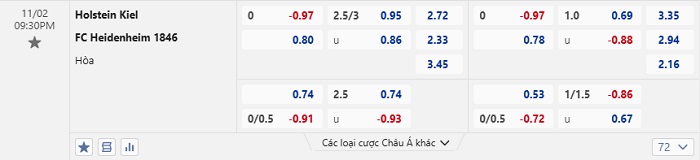 Tip kèo Châu Á full trận Holstein Kiel vs Heidenheim