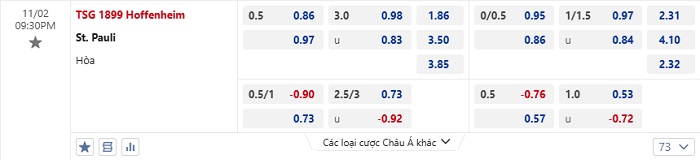 Tip kèo Châu Á hiệp 1 Hoffenheim vs St. Pauli