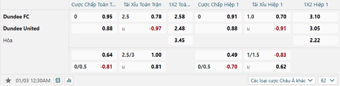 - Tip kèo cá cược Châu Á hiệp 1: Chọn Dundee FC +1/4