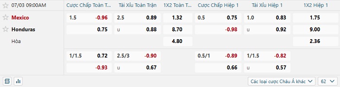 Tip kèo Châu Á hiệp 1 Mexico vs Honduras